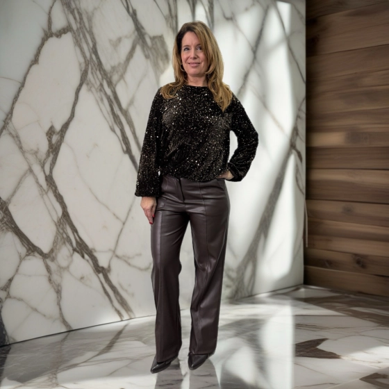 De choco vegan leren broek Vera Jo combineert moeiteloos stijl met duurzaamheid. Gemaakt van hoogwaardig PU-materiaal, biedt deze broek een comfortabele pasvorm voor elke gelegenheid. Deze broek heeft een knoop-ritssluiting. Perfect voor een trendy en milieubewuste look. | Duurzaam PU-materiaal | Comfortabele pasvorm | Trendy en milieubewust.