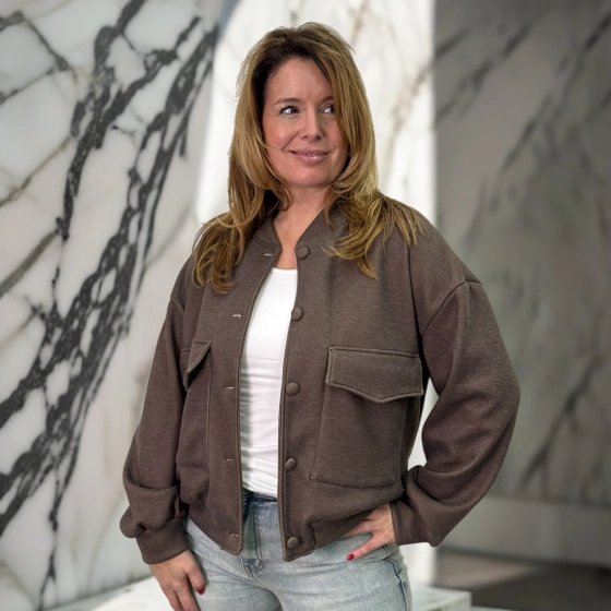Dit warme dames bomber vest is een echte musthave voor het seizoen. Het zachte bomber jasje heeft een comfortabele pasvorm en voelt heerlijk warm aan dankzij de mix van polyester, viscose en elastisch materiaal. Het bruine bomber vest is makkelijk te combineren en past perfect bij elke outfit. Dankzij de trendy oversized look is dit comfy vest voor dames ideaal voor zowel casual als geklede momenten. De opgestikte zakken en luxe afwerking geven dit licht bruine dames vest een stijlvolle uitstraling. Dit viscose vest voor dames biedt een perfecte mix van comfort en stijl en is een populaire keuze binnen de nieuwste dames modetrends. Shop nu dit luxe dames jasje en geniet van een veelzijdig item dat je het hele jaar door kunt dragen.