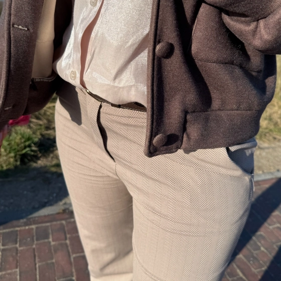 Twijfel je tussen twee maten? Kies dan voor je gebruikelijke maat – dankzij de soepele stof en fijne stretch valt het vest altijd mooi in model.