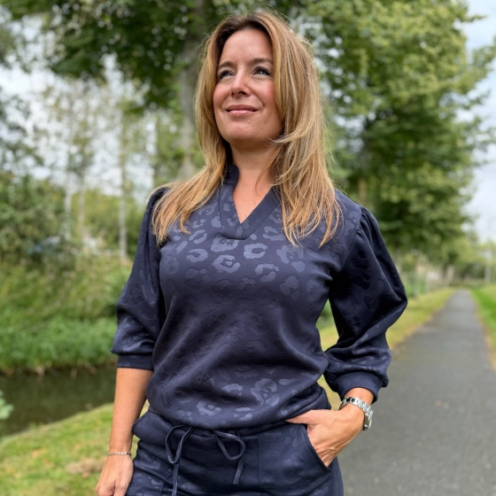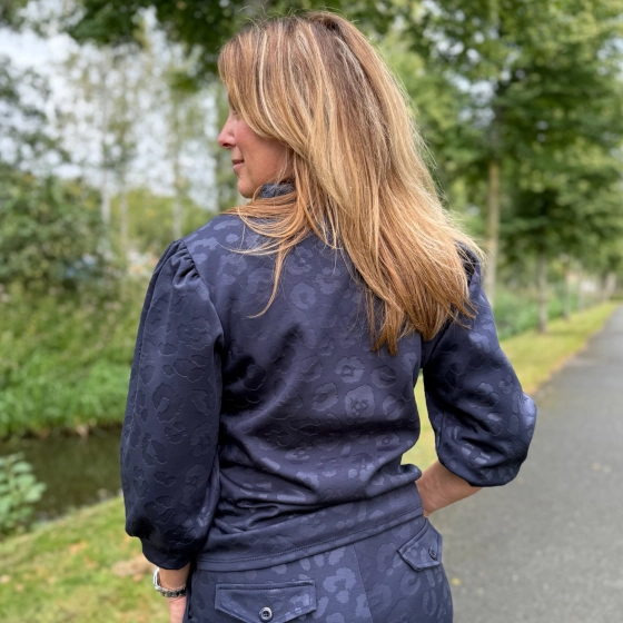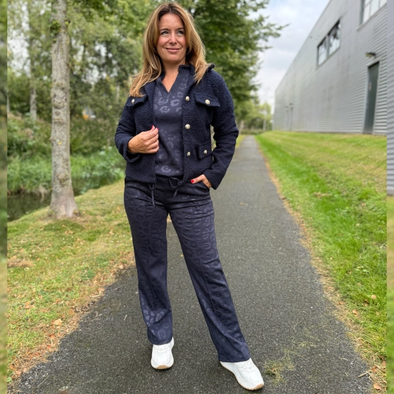 Jacky set navy – stijlvol & comfortabel in panterprint