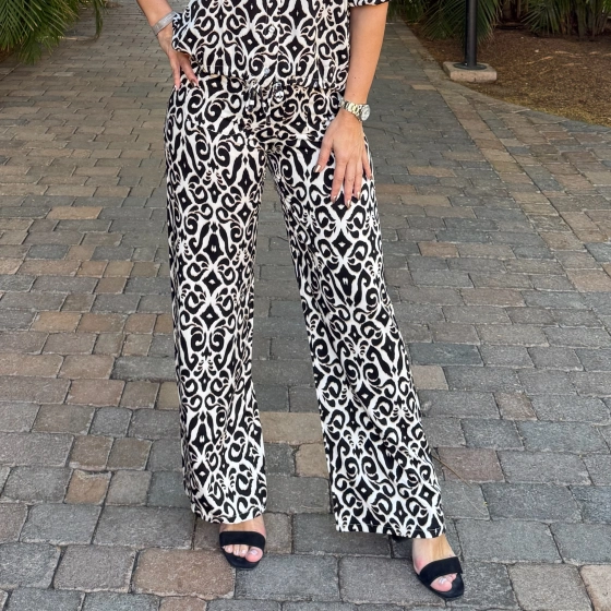 Zomerse viscose broek met zwart-wit print – luchtig, stijlvol en supercomfortabel!