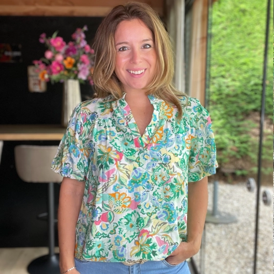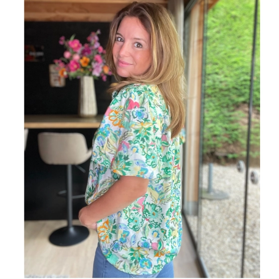 Zin in kleur? Deze Vera Jo top met bloemenprint is precies wat je nodig hebt voor een frisse, vrolijke voorjaar- of zomerlook! De top is gemaakt van een luchtige viscosemix (88% viscose, 12% nylon) en voelt heerlijk zacht aan op de huid. De kleurrijke bloemenprint in groen zorgt voor een echte eyecatcher-look.