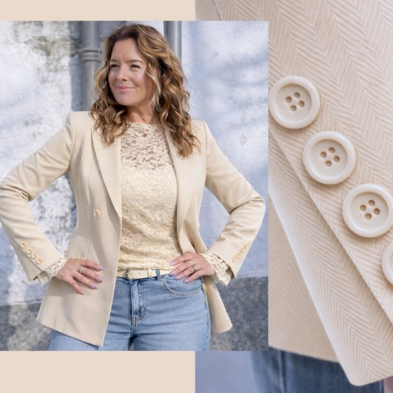 Deze oversized beige damesblazer met fijn visgraatmotief is een stijlvolle toevoeging aan elke outfit. De blazer heeft een binnenvoering. De stof voelt comfortabel aan en de mooie knoopjes op de mouwen geven een elegante touch. Perfect voor zowel variabele als informele gelegenheden, van kantoor tot een avondje uit. Maak een statement met deze blazer en geniet van de hoogwaardige kwaliteit, tijdloze stijl en veelzijdigheid. | Hoogwaardige kwaliteit | Tijdloos ontwerp | Geschikt voor diverse gelegenheden |