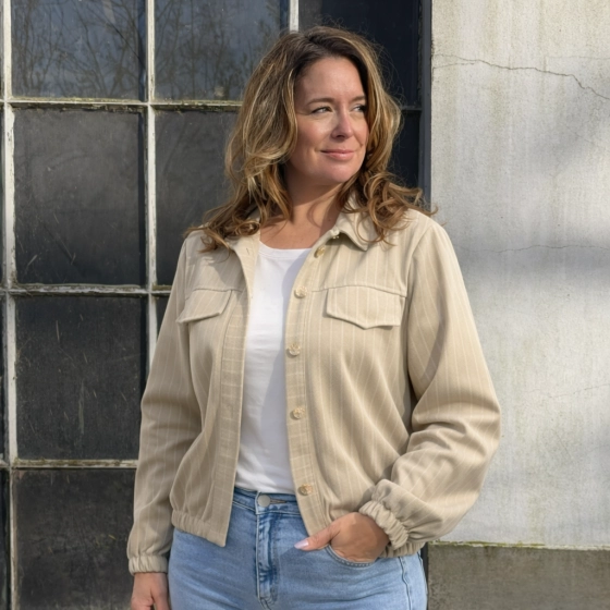 Dit beige bomberjack met streepmotief van Chastar biedt een comfortabele pasvorm dankzij de elastische tailleband en knoopsluiting. Geschikt voor verschillende gelegenheden, van casual tot trendy. Met dit jack creëer je moeiteloos een stijlvolle look. | Elastische tailleband voor perfecte pasvorm | Trendy streepmotief | Comfortabel en veelzijdig in gebruik.