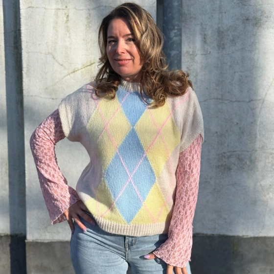 De beige trui met ruitpatroon is veelzijdig en tijdloos, perfect voor elke gelegenheid. Gemaakt van hoogwaardig materiaal voor een comfortabele pasvorm. Een must-have voor je garderobe. Duurzaam, stijlvol, en eenvoudig te combineren | Klassiek ruitpatroon | Verkrijgbaar in diverse kleuren | Geschikt voor elke maat.