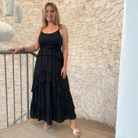 Model op de foto is 1.67 en heeft maat 38, zij draagt Luchtig zomers