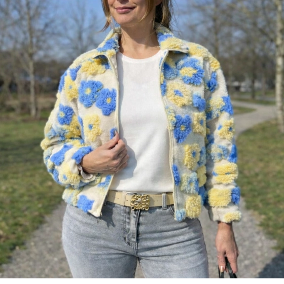 Dit trendy bomberjack in ivoor met gele en blauwe bloemen is een eyecatcher voor elke gelegenheid. Gemaakt van hoogwaardig materiaal en met een comfortabele pasvorm, geschikt tot maat 38-40. Perfect voor een casual look met een vleugje kleur. | Trendy design | Comfortabele pasvorm | Geschikt voor diverse gelegenheden.