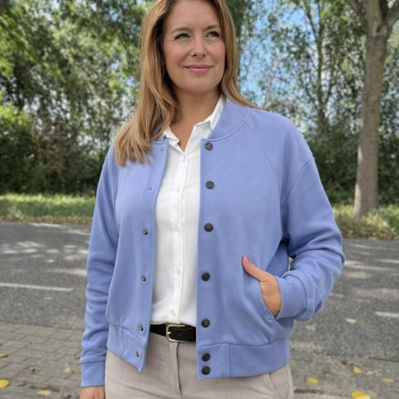Dit lavendel lichtblauwe bomberjack van Chastar is gemaakt van elastisch materiaal voor een comfortabele pasvorm. De punto kwaliteit zorgt voor een stijlvolle uitstraling, ideaal voor zowel casual als formele gelegenheden. Met knoopsluiting voor extra gemak. Ontdek de unieke USP's van dit jack: elastisch materiaal | punto kwaliteit | subtiel lichtblauwe kleur.