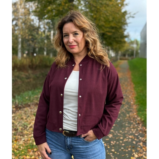 Ontdek het bomberjasje met visgraatmotief, een trendy kort damesjack dat klasse en comfort moeiteloos combineert. De verfijnde visgraatstructuur geeft het jasje een stijlvolle, tijdloze uitstraling. Dankzij de drukknopen, het korte model en de vrouwelijke pasvorm is dit bomberjack een echte musthave voor het nieuwe seizoen.