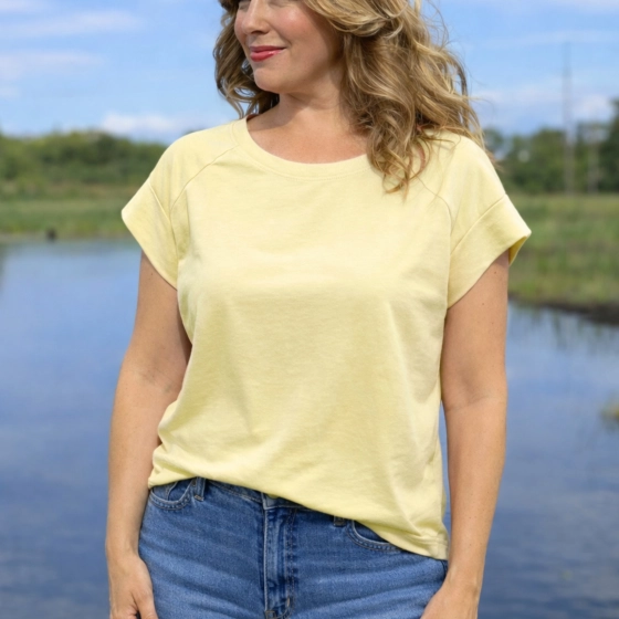 Dit zachte boxy basic shirt met raglanmouw biedt een comfortabele pasvorm dankzij het materiaal van 95% katoen en 5% elastisch. Perfect voor casual gelegenheden, de ronde hals vermijdt een praktische stijl toe aan elke outfit. Unieke verkoopargumenten: comfortabele pasvorm | veelzijdig te dragen tot maat 40 | zachtgele kleur voor een frisse uitstraling.