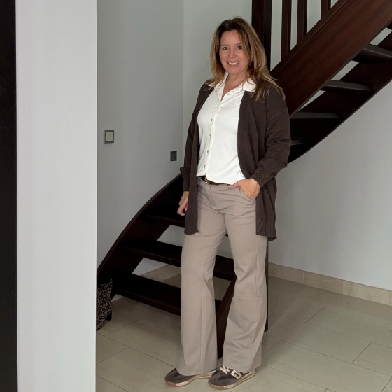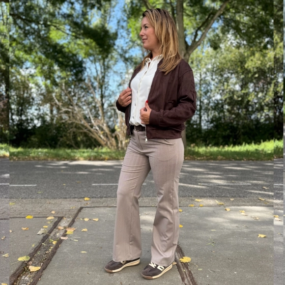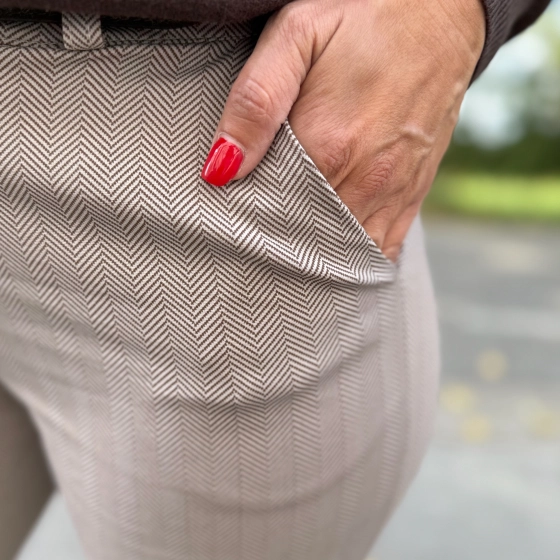 Stijlvolle damesbroek met visgraatmotief – elegant en comfortabel!