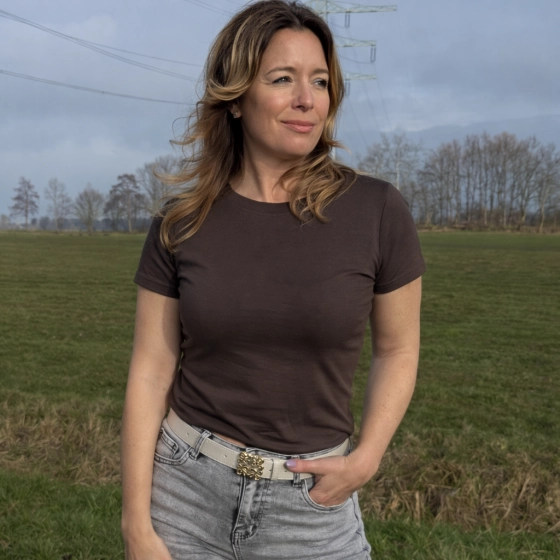 Dit basic shirt in bruin is dubbel gevoerd voor extra comfort en warmte. Gemaakt van viscose, heeft het een perfecte pasvorm en is geschikt voor elke gelegenheid. De korte mouwen en ronde hals maken het tijdloos en veelzijdig. | Comfortabel dubbel gevoerd | Perfecte pasvorm van viscose | Geschikt voor elke gelegenheid