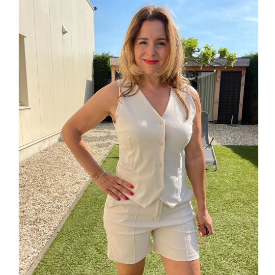 Stijlvol beige gilet van Chastar. Draag ‘m solo of combineer met de bijpassende korte broek voor een trendy co-ord look. Comfortabele pasvorm en een must-have voor zomerse dagen. Shop jouw set nu!
