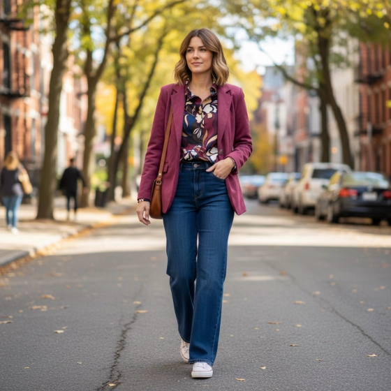 ✔ Stijlvolle bloemenprint in navy choco bordeaux