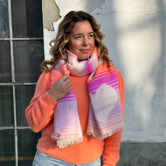 Deze dames sjaal met grote hartenprint in pastel multicolor is een trendy accessoire voor elke gelegenheid. Gemaakt van 100% viscose met afmetingen van 190 x 72cm, biedt het een comfortabele pasvorm en een opvallende uitstraling. Perfect voor het toevoegen van een speelse touch aan je outfit. | Trendy hartenprint | Gemaakt van hoogwaardige viscose | Comfortabele pasvorm