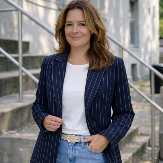 De oversized donkerblauwe blazer met streepmotief is een stijlvolle toevoeging aan je garderobe. Deze blazer is voorzien van een binnenvoering voor extra comfort en heeft een klassieke knoopsluiting. Perfect voor zowel functionele als informele gelegenheden. Ontdek de uitstekende kwaliteit, tijdloze uitstraling en veelzijdigheid van deze blazer | Hoogwaardige binnenvoering | Klassieke knoopsluiting | Geschikt voor diverse gelegenheden