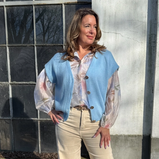 Dit blauwe gebreide gilet Liva is een veelzijdige toevoeging aan elke garderobe. Gemaakt van 78% acryl en 22% polyamide, biedt het comfort en warmte. De one-size-fits-all pasvorm is geschikt voor maten tot 42. Perfect voor zowel casual als formele gelegenheden. | Warm en comfortabel materiaal | Geschikt voor maten tot 42 | Veelzijdig te dragen