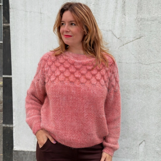Op zoek naar een zachte, warme en tijdloze trui voor dit seizoen? Deze gebreide damestrui in peach is een echte musthave voor jouw garderobe. De trui is uitgevoerd in een mooie grofgebreide kwaliteit met een subtiel motief op de schouders en heeft een comfortabele pasvorm die zowel casual als stijlvol te dragen is.