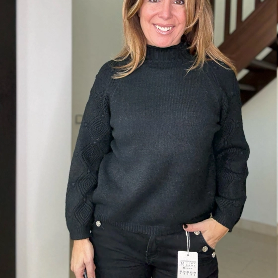 Deze gebreide trui met ajourmouwen is een absolute musthave uit de nieuwe collectie van Kenza Moda. De trui heeft een prachtige opstaande hals met subtiele ruffle-rand en sierlijke ajourdetails op de mouwen — een perfecte combinatie van vrouwelijke elegantie en draagcomfort.
