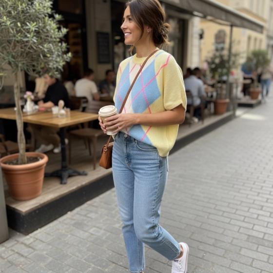 De gele trui met ruitpatroon is veelzijdig en tijdloos, perfect voor elke gelegenheid. Gemaakt van hoogwaardig materiaal voor een comfortabele pasvorm. Een must-have voor je garderobe. Duurzaam, stijlvol, en eenvoudig te combineren | Klassiek ruitpatroon | verkrijgbaar in diverse kleuren | Geschikt voor elke maat.