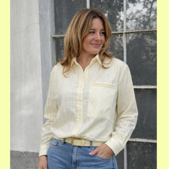 Gemma Ricceri geel gestreepte blouse borstzakje