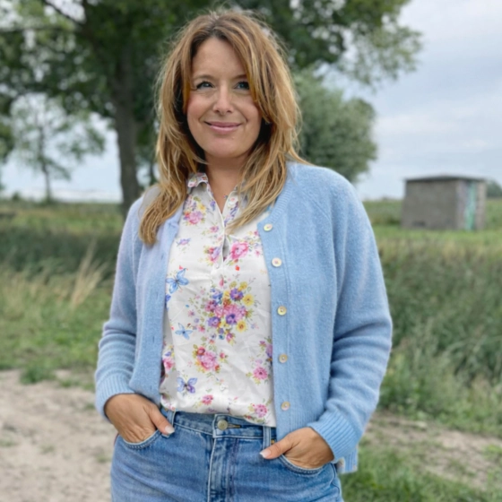 Het vest heeft een klassieke V-hals, sluit met knoopjes en valt soepel langs je lichaam. Een ideaal item voor een relaxte casual look, maar ook perfect over een blouse of jurkje voor een meer geklede outfit.
