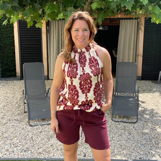 Model op de foto is 1.67 en heeft maat 38, zij draagt dit setje in maat S-M
