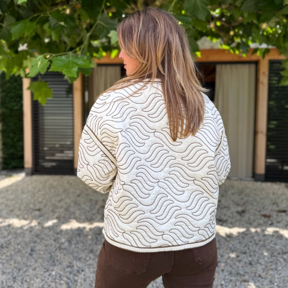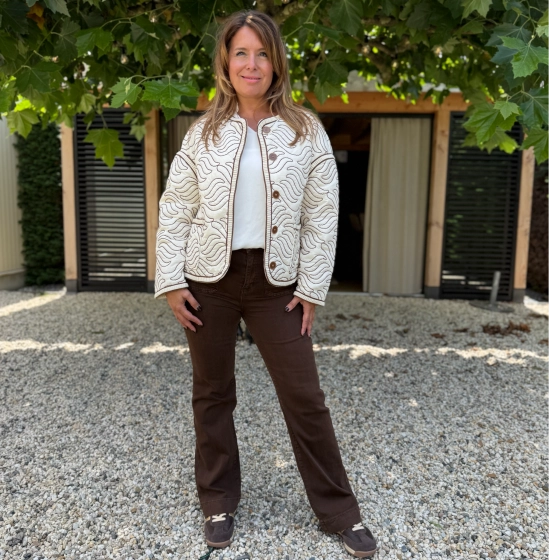 Model op de foto is 1.67 en heeft maat 38, zij draagt dit jack in maat S-M. Jack valt groot uit. S-M 40-42 en M-L 42-44