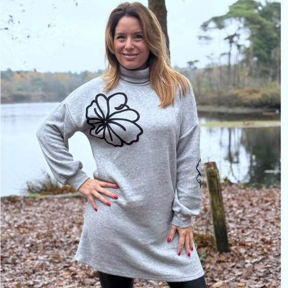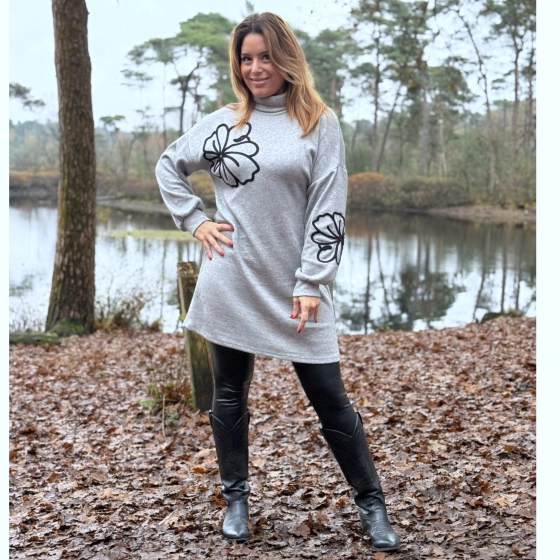 Grijze jurk met elegant bloemmotief – jouw nieuwe favoriet voor elke gelegenheid ?