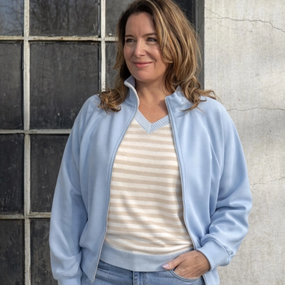 Dit vleermuismouwen vest met rits in lichtblauw is stijl met comfort. Gemaakt van hoogwaardig materiaal voor een perfecte pasvorm, ideaal voor casual of sportieve gelegenheden. Met zijn opvallende kleuren en trendy ontwerp is dit een must-have voor fashionista's. | Stijlvolle vleermuismouwen | Handige ritsen aan de voorkant | Beschikbaar in meerdere maten.