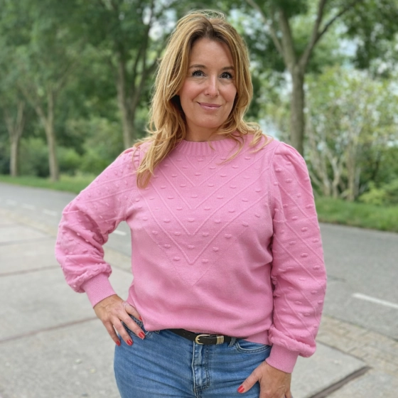 De roze trui nopjes is fijn gebreid en voelt zacht aan, ideaal voor comfortabele dagen. Dankzij de pasvorm in één maat past deze trui tot maat 42, waardoor het een veelzijdige keuze is voor verschillende gelegenheden. Kies voor stijl en comfort met deze trui: fijn gebreid | zachte stof | past tot maat 42.