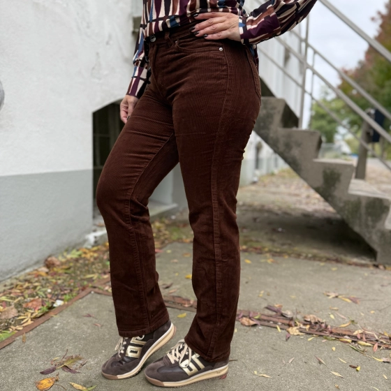 De ribstof is zacht en comfortabel, met voldoende stretch zodat de broek mooi aansluit en toch lekker meebeweegt. De warme choco kleur maakt deze broek eindeloos te combineren: draag hem casual met een sweater en sneakers of kies voor een blouse en enkellaarsjes voor een stijlvolle look.