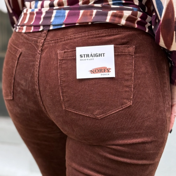 Deze Norfy straight rib broek in choco is een absolute musthave voor jouw najaars- en wintergarderobe. De broek heeft een straight fit en een high waist, waardoor hij niet alleen heerlijk zit maar ook een mooi, vrouwelijk silhouet geeft.