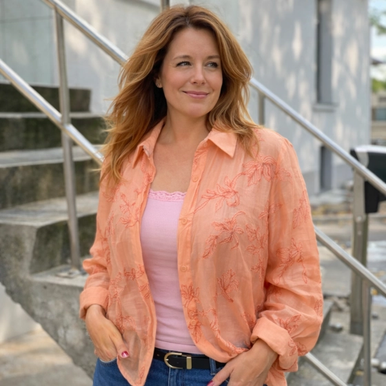 De peach verborgen blouse van Gemma Ricceri is gemaakt van 80% tencel en 20% nylon, waardoor het comfortabel en geweven is. Deze transparante blouse heeft een one-size-fits-all pasvorm en past perfect bij maat 42. Geschikt voor zowel casual als variabele gelegenheden. Ontdek de unieke eigenschappen van deze blouse: comfortabel materiaal, tijdloos ontwerp en veelzijdigheid. | Comfortabel materiaal | Tijdloos ontwerp | Veelzijdig in gebruik |