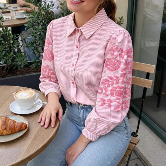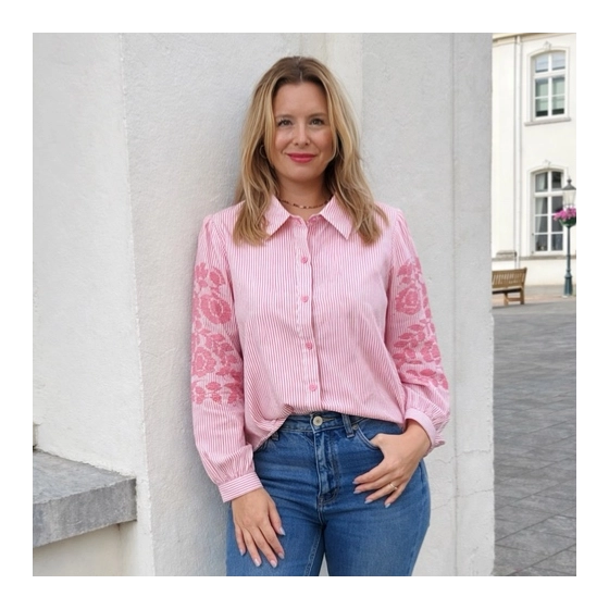 De roze Gemma Ricceri strepen blouse met geborduurde mouwen is een stijlvolle keuze voor elke gelegenheid. Gemaakt van hoogwaardig materiaal, biedt deze blouse een comfortabele pasvorm en een trendy uitstraling. Perfect voor zowel casual als formele gelegenheden. Ontdek de unieke eigenschappen van deze blouse: hoogwaardige kwaliteit, opvallend design en veelzijdigheid. | Hoogwaardig materiaal | Comfortabele pasvorm | Trendy uitstraling |
