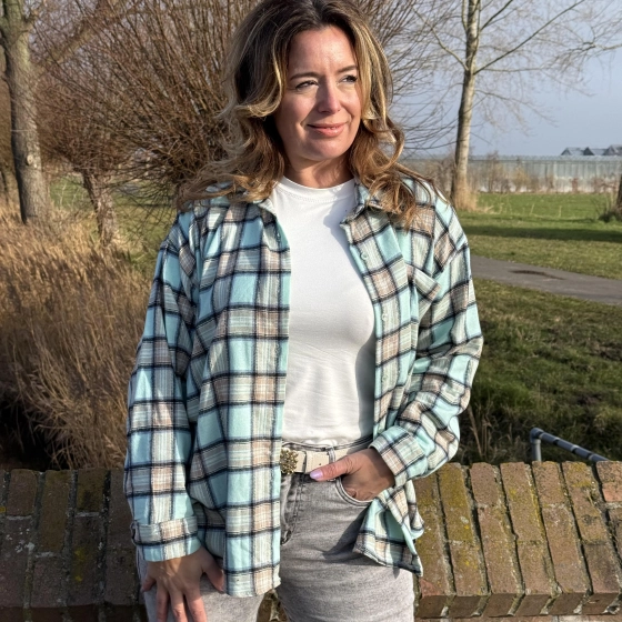 De mintgroene ruitenblouse is gemaakt van een mix van 75% katoen en 25% polyester, wat zorgt voor een comfortabele pasvorm. Geschikt voor zowel casual als functionele gelegenheden, met klassieke knoopdetails. Ontdek de veelzijdigheid van deze blouse met zijn tijdloze design, beschikbaar in blauw, beige en zwart. | Comfortabele pasvorm | Geschikt voor diverse gelegenheden | Tijdloos ontwerp