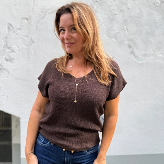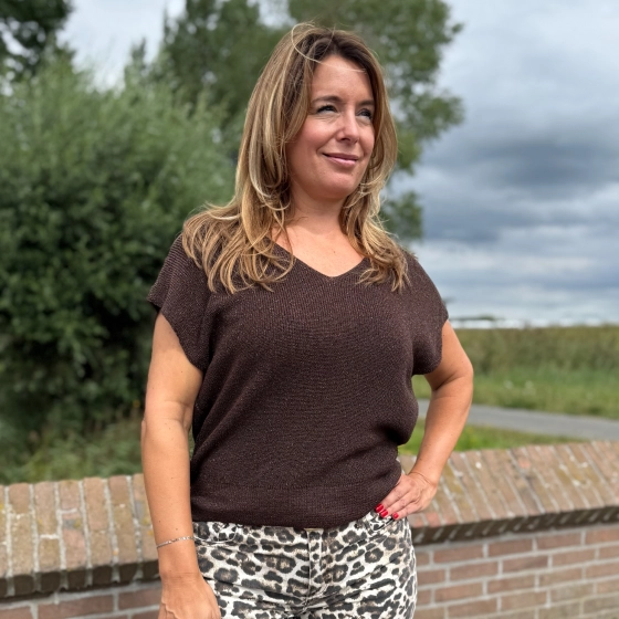 Wil jij een shirt dat direct iets extra’s aan je outfit geeft? Dan is het shiny lurex shirt Nola een perfecte keuze. De glanzende draad geeft dit shirt een feestelijke, maar toch verfijnde uitstraling – ideaal voor een etentje, feestje of stijlvolle daglook.
