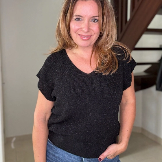 Wil jij een shirt dat direct iets extra’s aan je outfit geeft? Dan is het shiny lurex shirt Nola een perfecte keuze. De glanzende draad geeft dit shirt een feestelijke, maar toch verfijnde uitstraling – ideaal voor een etentje, feestje of stijlvolle daglook.