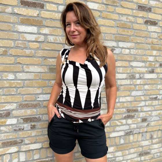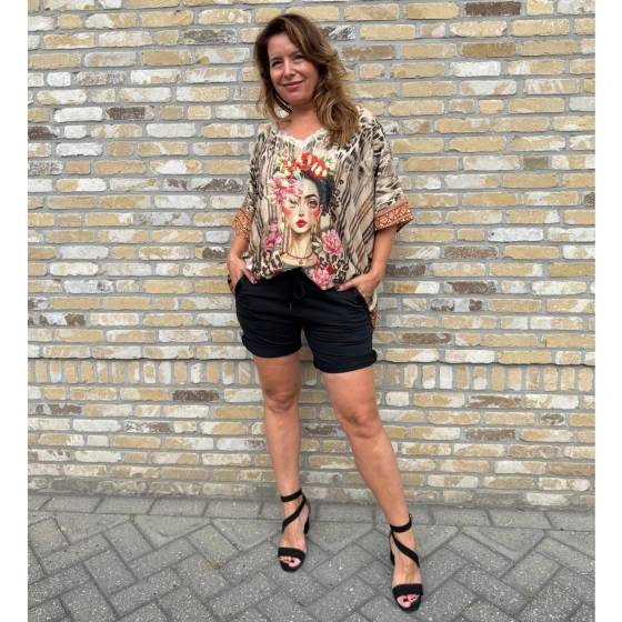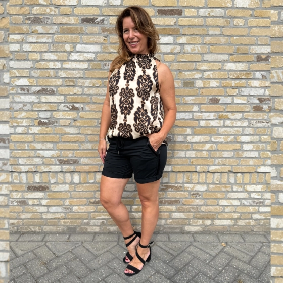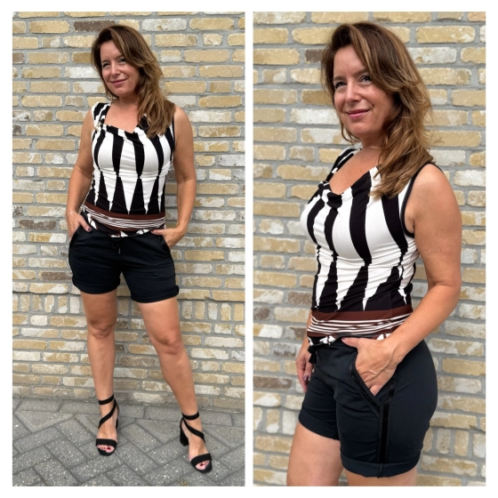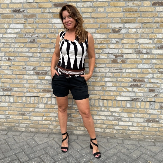 PasvormModel op de foto is 1.67 en heeft maat 38, zij draagt dit shortje in maat M.