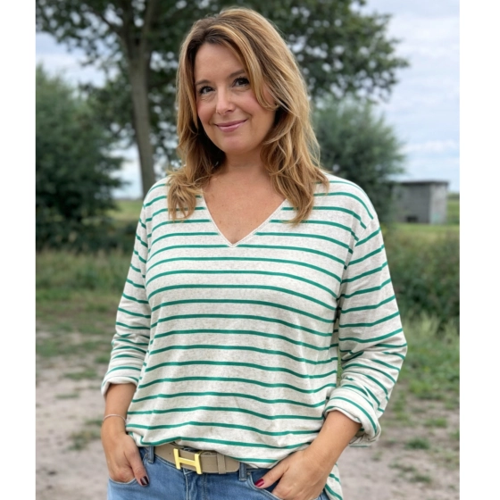 Dit groene strepen V-hals shirt is een tijdloze toevoeging aan je garderobe. Gemaakt van hoogwaardig materiaal voor een comfortabele pasvorm, ideaal voor zowel casual als formele gelegenheden. Met zijn subtiele kleuren en klassieke ontwerp is dit shirt veelzijdig te combineren. | Kwalitatief materiaal | Comfortabele pasvorm | Geschikt voor diverse gelegenheden |