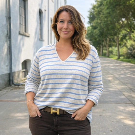 Dit lichtblauwe strepen V-hals shirt is een tijdloze toevoeging aan je garderobe. Gemaakt van hoogwaardig materiaal voor een comfortabele pasvorm, ideaal voor zowel casual als variabele gelegenheden. Met zijn verschillende kleuren en klassiek ontwerp is dit shirt veelzijdig te combineren. | Kwalitatief materiaal | Comfortabele pasvorm | Geschikt voor diverse gelegenheden |