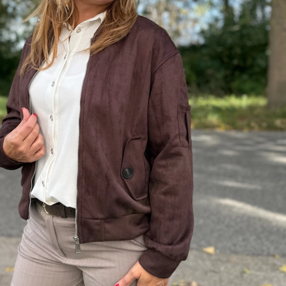 Trendy suèdine bomberjack met ritssluiting