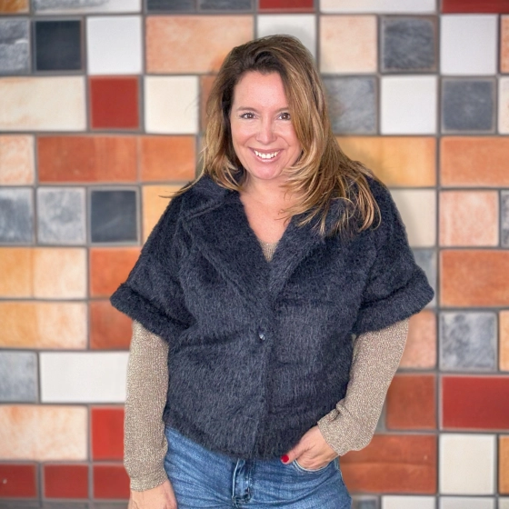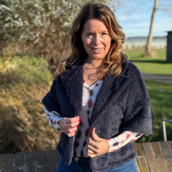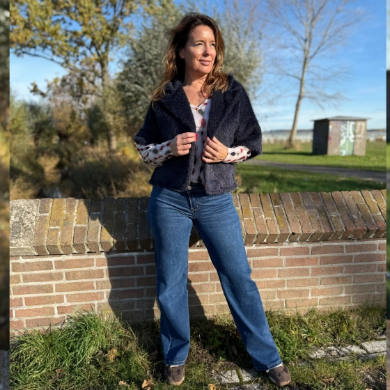 Teddy gilet met kraag navy Jola