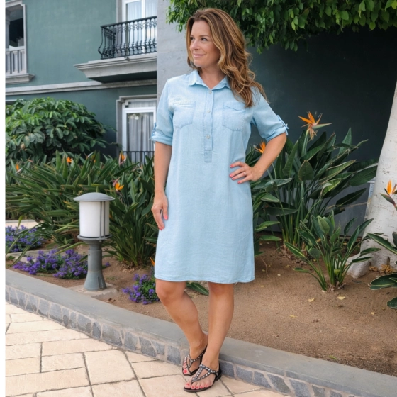 Deze stijlvolle blauwe jurk is gemaakt van zacht en duurzaam Tencel materiaal, wat zorgt voor een comfortabele pasvorm de hele dag door. Perfect voor zowel casual als formele gelegenheden, met maten beschikbaar in M, L en XL. Ontdek de ademende stof, milieuvriendelijke productie en veelzijdige draagbaarheid van deze jurk. | Ademend materiaal | Duurzaam geproduceerd | Geschikt voor diverse gelegenheden