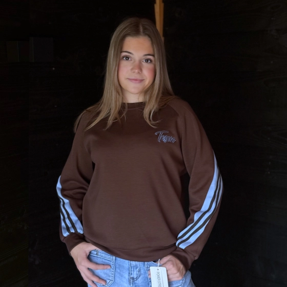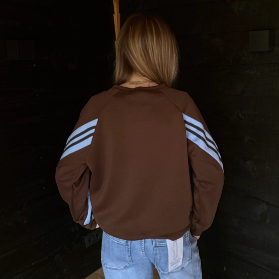 De bruine trui met lichtblauwe bies is een trendy en comfortabel kledingstuk voor elke gelegenheid. Gemaakt van hoogwaardig materiaal zorgt voor de trui voor een perfecte pasvorm en een stijlvolle uitstraling. Ideaal voor zowel casual als functionele gelegenheden. | Hoogwaardig materiaal | Perfecte pasvorm | Geschikt voor diverse gelegenheden |