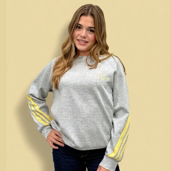 De grijze trui met gele bies is een trendy en comfortabel kledingstuk voor elke gelegenheid. Gemaakt van hoogwaardig materiaal zorgt voor de trui voor een perfecte pasvorm en een stijlvolle uitstraling. Ideaal voor zowel casual als functionele gelegenheden. | Hoogwaardig materiaal | Perfecte pasvorm | Geschikt voor diverse gelegenheden |
