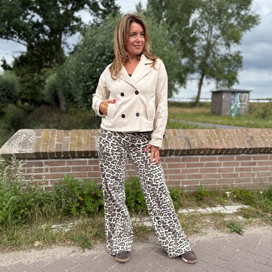 De Toxik3 wide leg broek in panterprint is dé eyecatcher voor jouw garderobe. Met zijn trendy print en vrouwelijke wide leg pasvorm steel je gegarandeerd de show. Deze broek is gemaakt van een comfortabele mix van 77% katoen, 19% viscose, 3% polyester en 1% elastaan, waardoor hij zacht aanvoelt, ademend is en nét dat beetje stretch heeft voor extra draagcomfort.