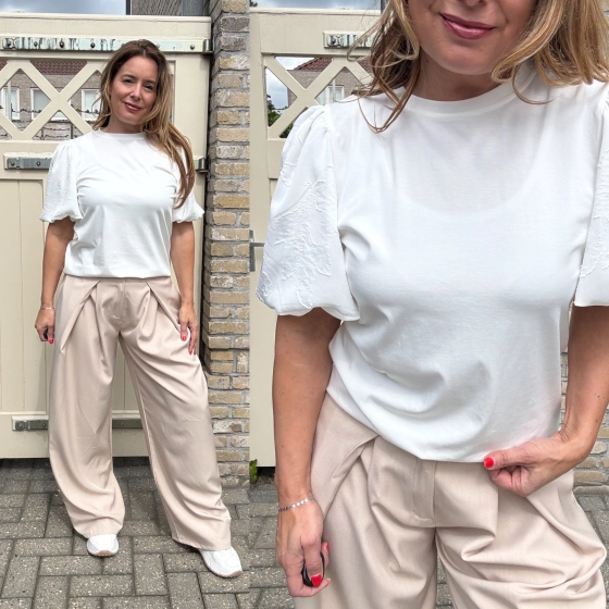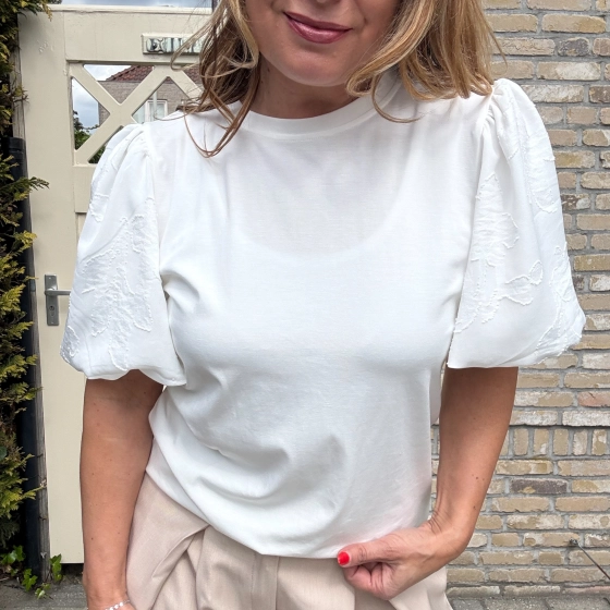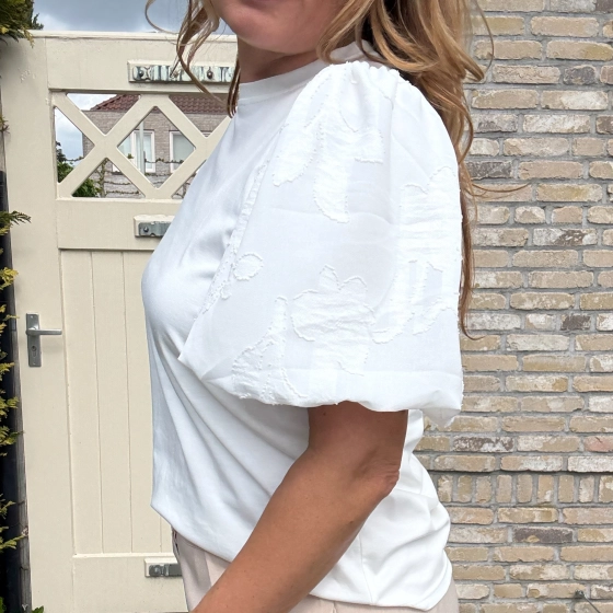 Het Vera Jo shirt met pofmouwen in wit is een stijlvolle toevoeging aan je garderobe. De ballonmouwen en ronde hals zorgen voor een elegante uitstraling. Perfect voor zowel casual als formele gelegenheden. Comfortabel materiaal en een goede pasvorm. USP's: Stijlvolle ballonmouwen | Elegante ronde hals | Geschikt voor diverse gelegenheden