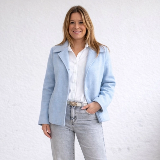Deze lichtblauwe voorjaarsjas verplaatst stijl en comfort in één tijdloos ontwerp. De klassieke knoopsluiting en twee praktische steekzakken zorgen voor een elegante, draagbare look die je krachtige stoffen met elke outfit.