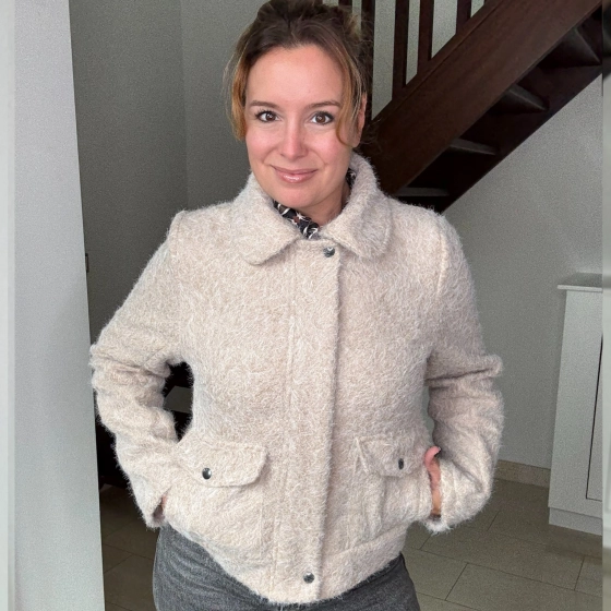 Maak kennis met het wol look jack Lina in beige – een echte blikvanger voor het najaar! Dit korte teddy jasje verspreide stijl, warmte en comfort in één trendy model. Dankzij de harige structuur voelt het heerlijk zacht aan en geeft het jouw outfit direct een luxe uitstraling.